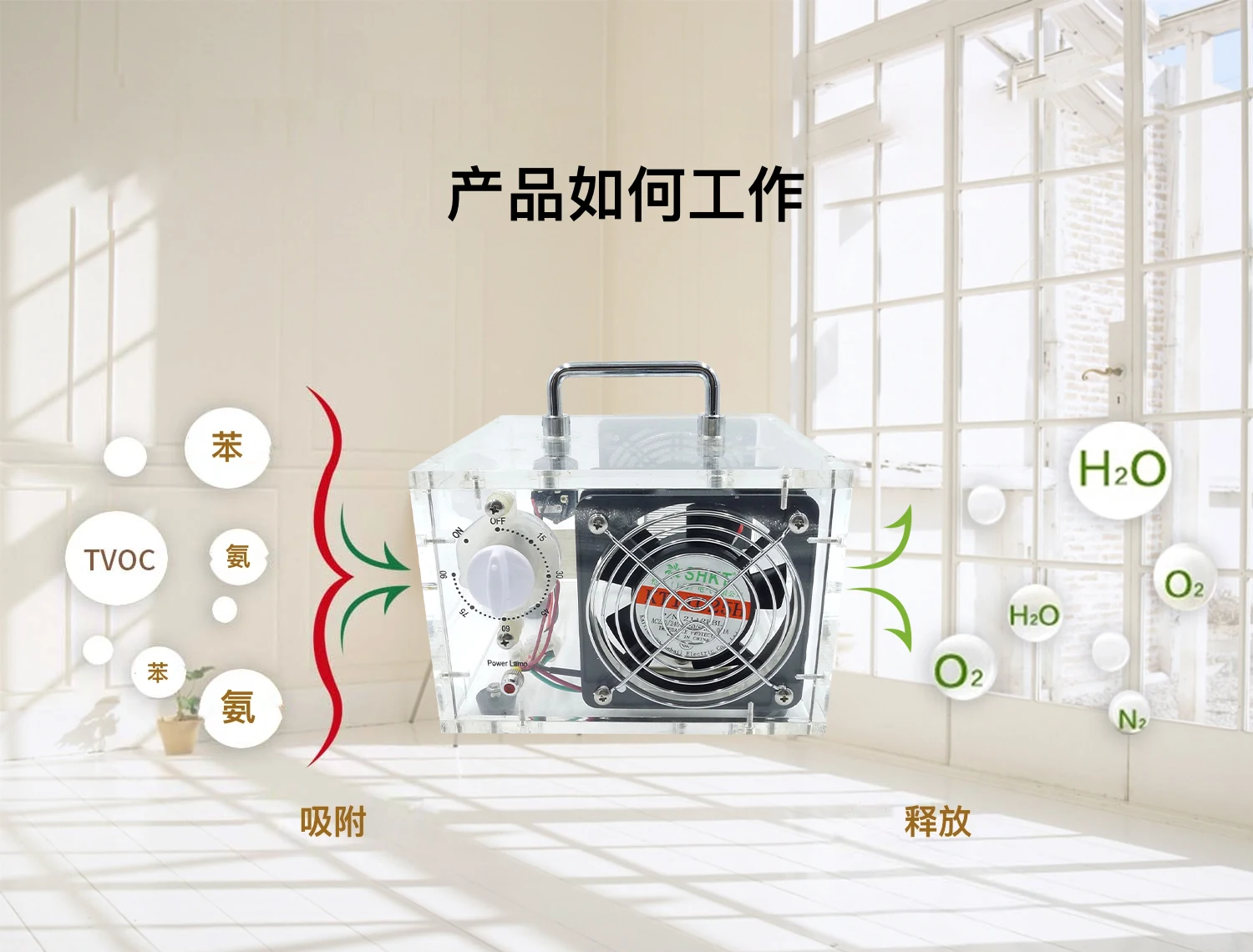 机器在工作时会产生臭氧,通过臭氧气体分解气味、微生物和其他污染物来净化空气。